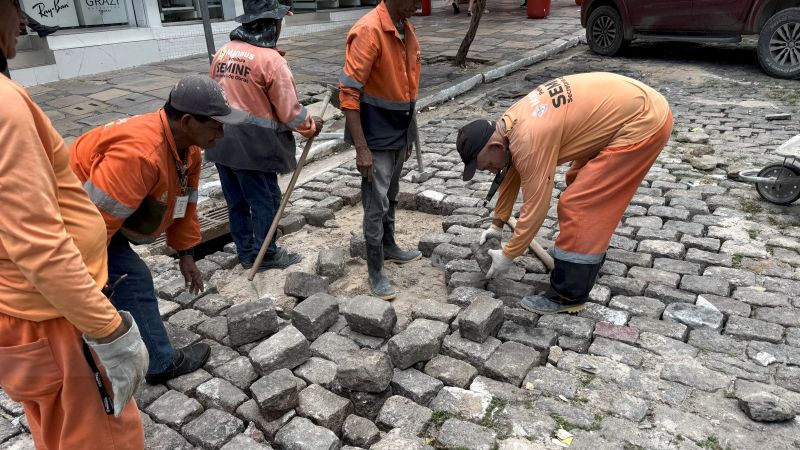 A Prefeitura de Manaus, por meio da Secretaria Municipal de Infraestrutura (Seminf), realizou, nesta terça-feira, 9/9, um mutirão de recuperação do pavimento em paralelepípedo na avenida Eduardo Ribeiro, um dos principais corredores do centro histórico da capital. A ação contemplou o trecho do estacionamento da via, atendendo a demanda de lojistas e usuários da região.