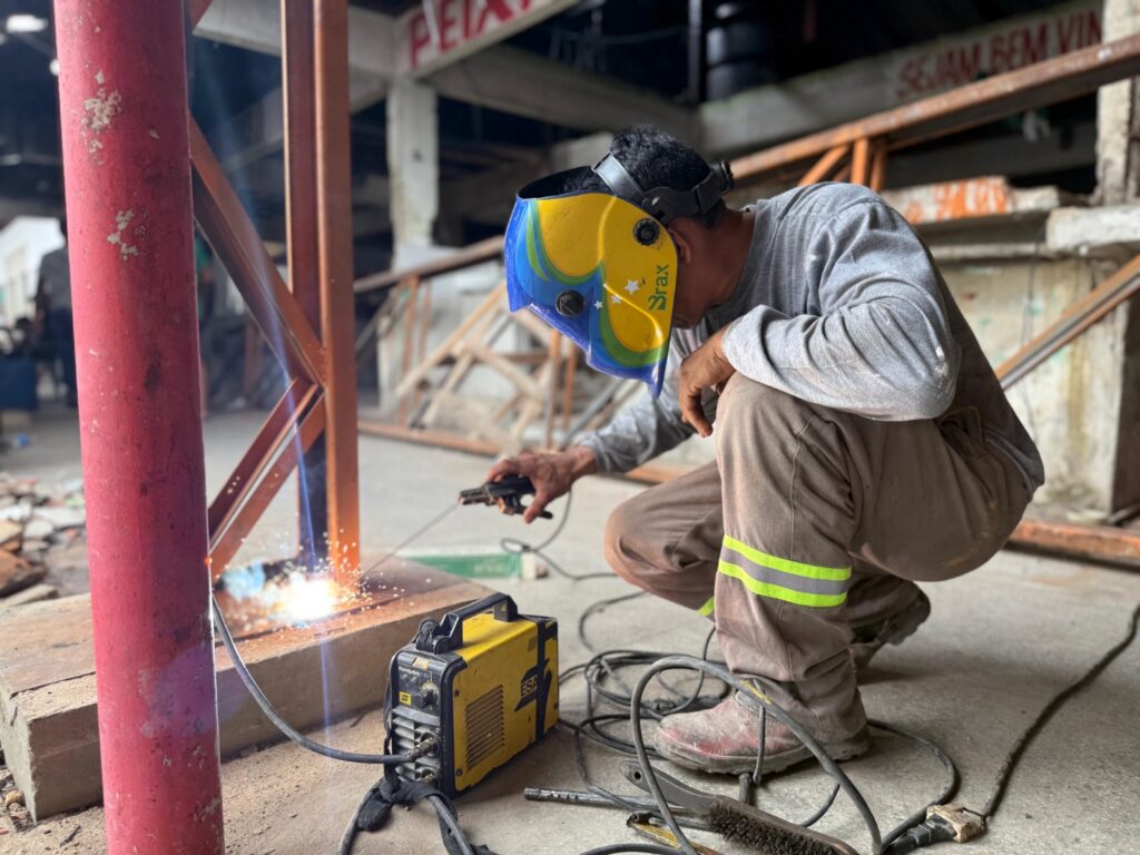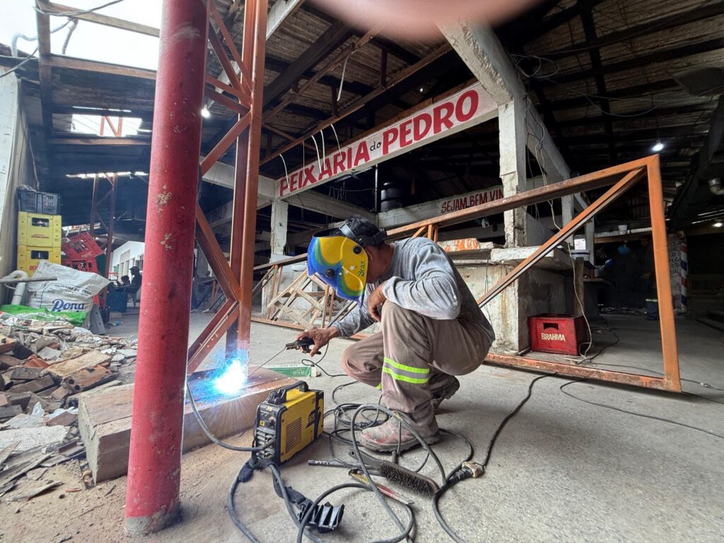 A reforma inclui troca da cobertura, instalação de forro em PVC, iluminação em LED, modernização elétrica, novo piso e recuperação completa dos boxes internos, que dará uma estrutura moderna e mais acolhedora para todos. Nesta sexta-feira, 19/9, as equipes trabalham no reforço das fundações e estruturas da feira, etapa que assegura maior durabilidade à construção.