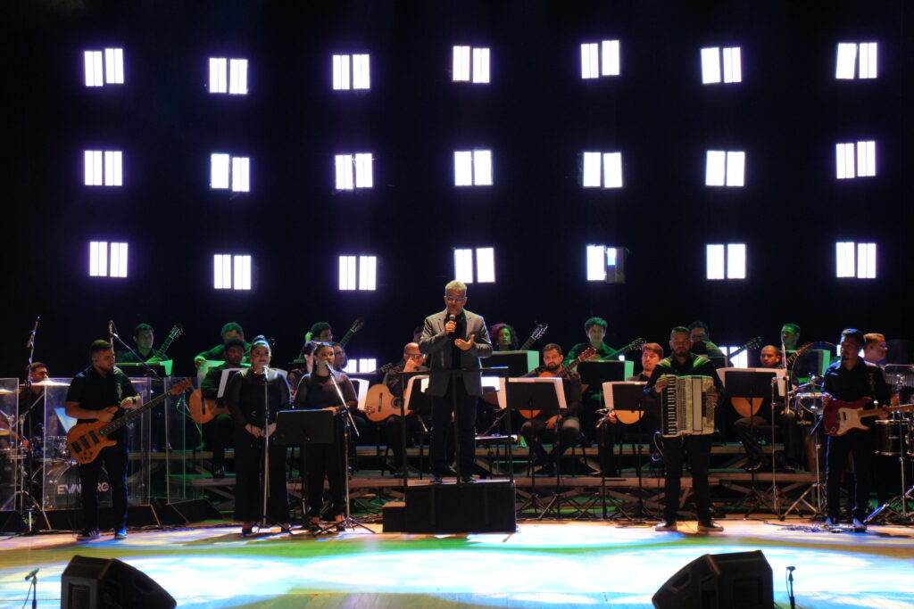 Sob a regência do maestro Davi Nunes, o espetáculo foi estruturado em quatro blocos, com músicas consagradas de Luiz Gonzaga, Sivuca, Alceu Valença, além de obras autorais e repertório regional.