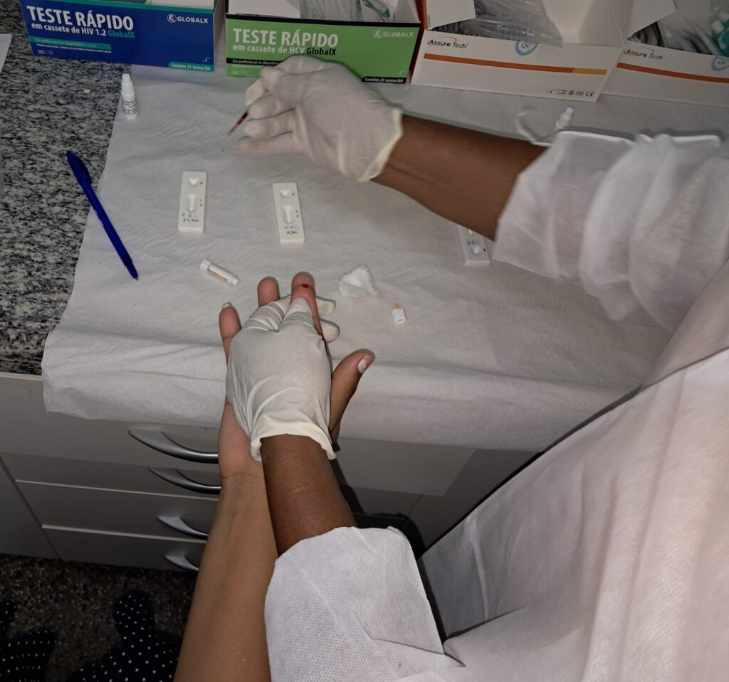 A técnica do Núcleo de Controle de HIV/Aids, Infecção Sexualmente Transmissível (IST) e Hepatites Virais da Semsa, enfermeira Ylara Enmily Costa, explica que o teste rápido pode ser feito sem estrutura laboratorial e com resultado emitido em até 30 minutos, a partir da coleta de uma gota de sangue da ponta do dedo do paciente.