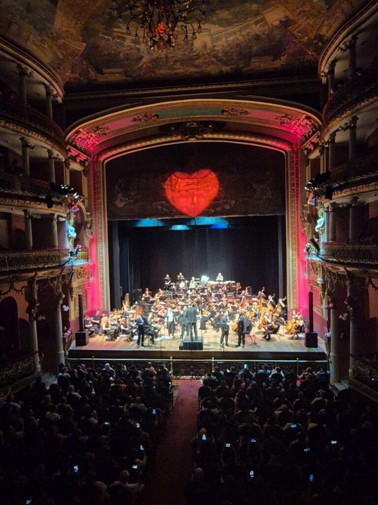 Em tom bem-humorado, o maestro Otávio Simões arrancou risos da plateia ao brincar durante a apresentação: “O maestro Zubin Mehta tinha três tenores. Eu tenho quatro!”, se referindo à apresentação histórica dos Três Tenores – Luciano Pavarotti, Plácido Domingo e José Carreras – em Los Angeles, nos Estados Unidos.