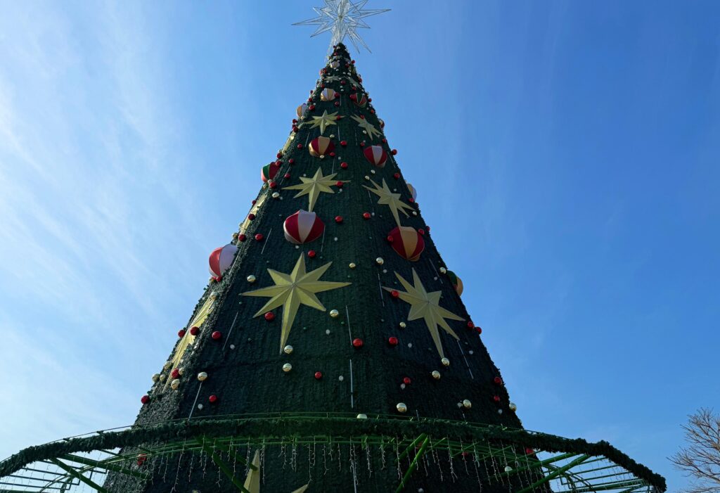 A visita marcou o avanço da montagem da Árvore de Natal Digital, que se tornará um dos grandes atrativos do complexo. “Hoje, vamos realizar o teste de iluminação e, no próximo sábado, dia 1º, a população já poderá acessar o espaço e visitar de perto essa estrutura inédita. Além da árvore, teremos portal de entrada, casa do Papai Noel e uma pista de gelo, com arquibancada e patinação para o público”, destacou o prefeito.