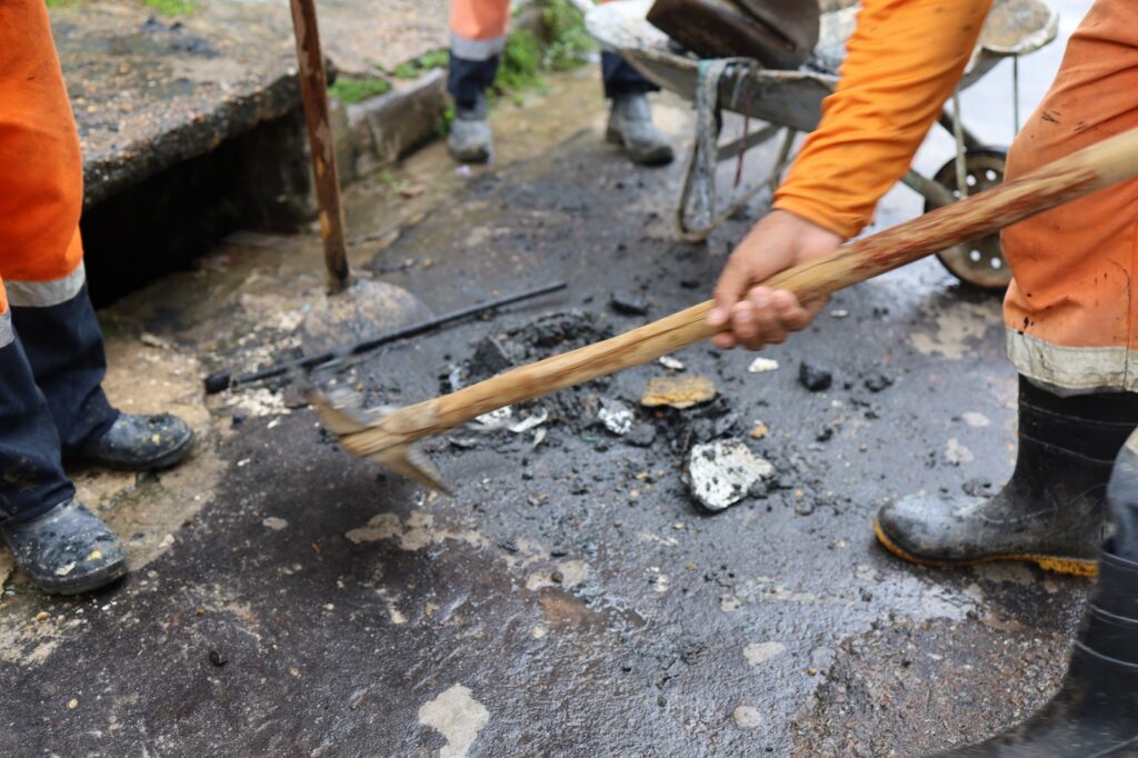 Rua do Lírio do Vale recebe serviços de limpeza e desobstrução de caixa coletora da Prefeitura de Manaus