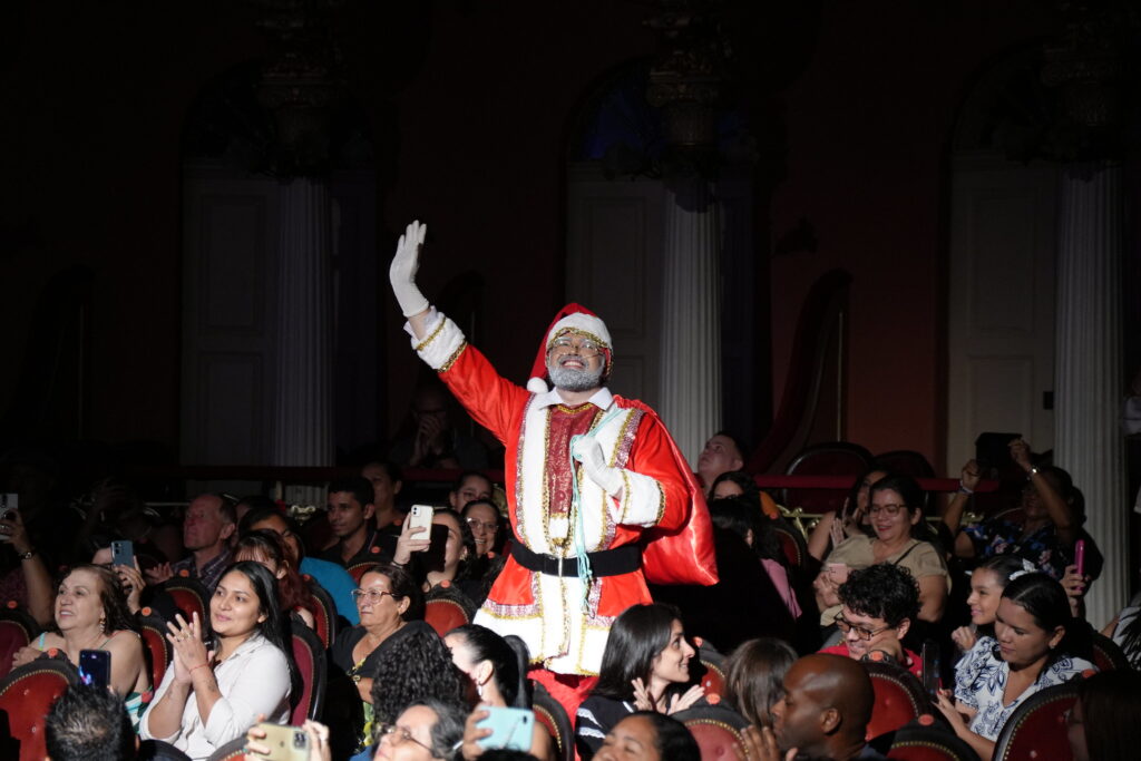 O Liceu de Artes e Ofícios Claudio Santoro apresentou, na quinta-feira (04/12), a estreia do espetáculo “O Natal da Vila Caminho”, no Teatro Amazonas. A montagem segue até domingo (0712), sempre às 19h, como programação do Festival de Natal do Teatro Amazonas, parte integrante do Mundo Encantado do Natal, realizado pelo Governo do Amazonas, por meio da Secretaria de Cultura e Economia Criativa.