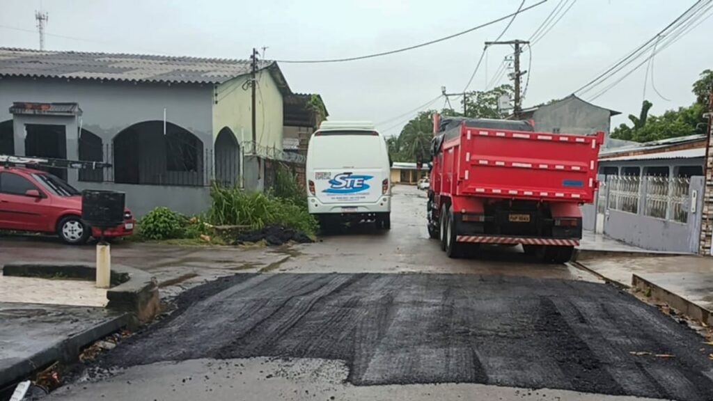 No conjunto Boas Novas, as equipes atuam na rua Jacaúna, com a aplicação de nova massa asfáltica em trechos comprometidos pelo desgaste natural do pavimento. De forma simultânea, os trabalhos avançam também na avenida Camapuã, no conjunto Francisca Mendes, e na rua 213, no núcleo 15, vias que registram intenso fluxo de veículos, inclusive de grande porte.