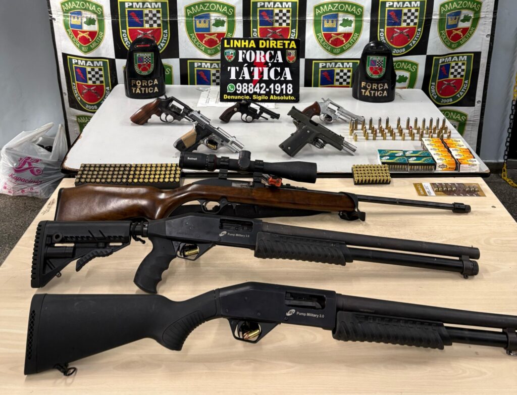 Entre os meses de janeiro a dezembro de 2015, foram apreendidas no Amazonas 505 armas, deste total, 339 eram revólveres, 88 pistolas e 35 espingardas. E em 2025, no mesmo período, os números apresentados saltaram para 1.606 armamentos, sendo 425 revólveres, 423 espingardas e 401 pistolas sendo retirados de circulação.