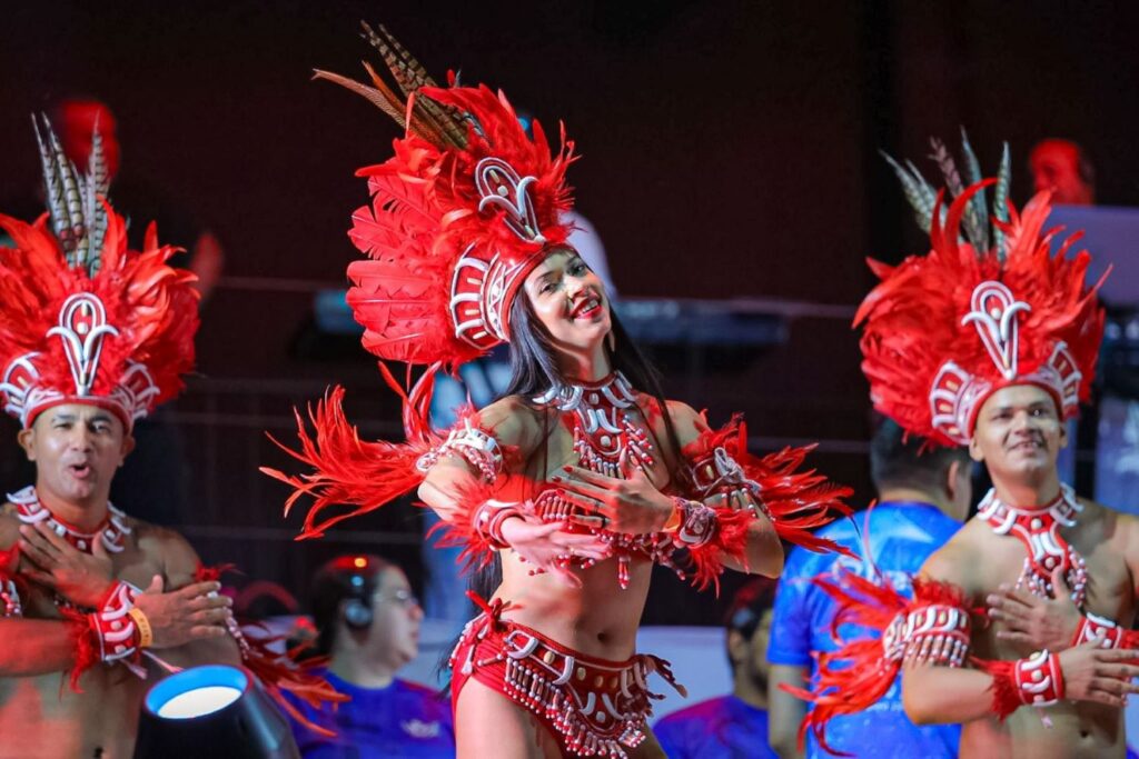 O Carnaboi 2026 terá início às 19h e contará com mais de 40 atrações. Além dos bois de Parintins, a festa celebra a força cultural dos bois-bumbás de Manaus, com apresentações dos grupos Brilhante, Corre Campo, Garanhão e Tira Prosa.