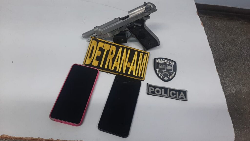 O Departamento Estadual de Trânsito do Amazonas (Detran-AM) flagrou motociclistas portando simulacro de arma de fogo e celular roubado, durante operação de fiscalização realizada na noite de domingo (01/03), na avenida Margarita, bairro Nova Cidade, zona norte de Manaus.