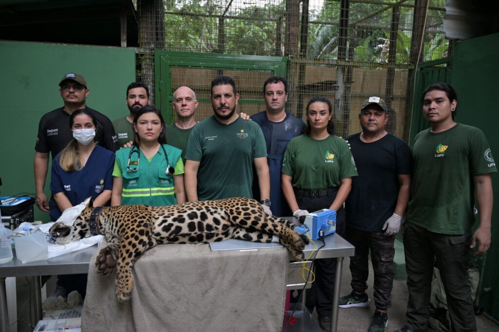 Antes da soltura, a onça recebeu uma coleira de monitoramento por GPS para acompanhar seus deslocamentos na floresta, em um caso considerado inédito na Amazônia de resgate, recuperação e reintrodução bem-sucedida da espécie na natureza.