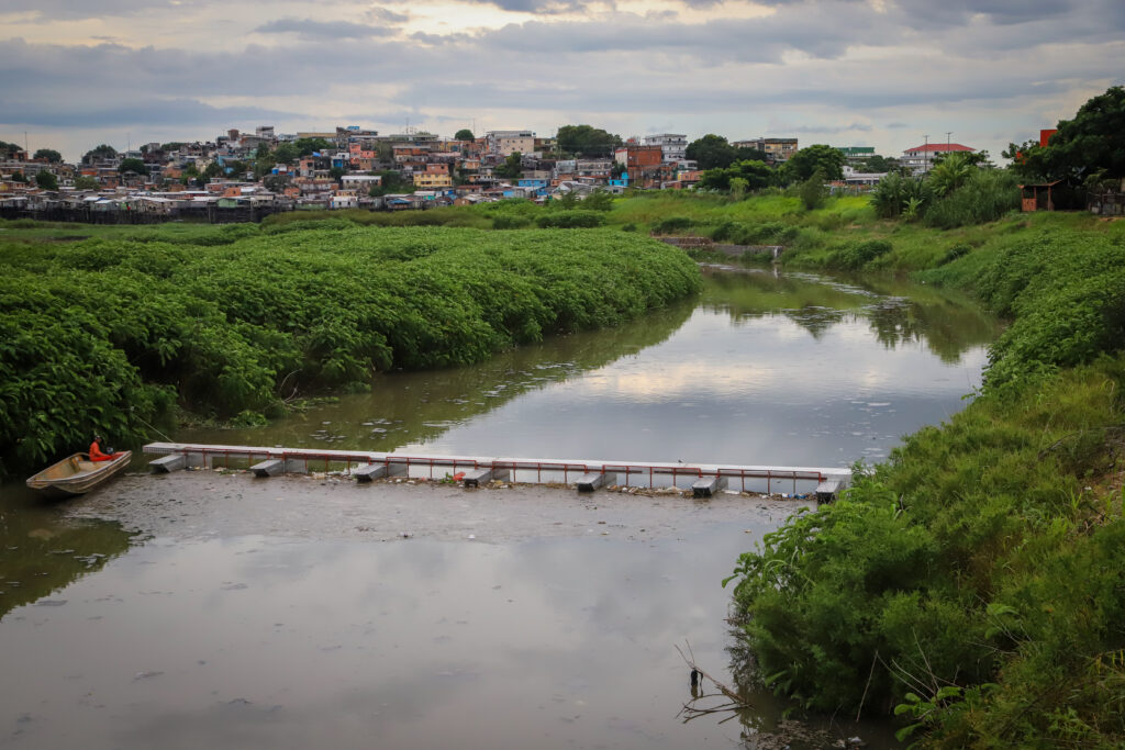Outro destaque da programação foi a ecobarreira instalada no igarapé do 40. A estrutura atua como ponto de contenção de resíduos arrastados pelas chuvas para os igarapés, impedindo que o lixo alcance o rio Negro e facilitando o trabalho das equipes de limpeza.