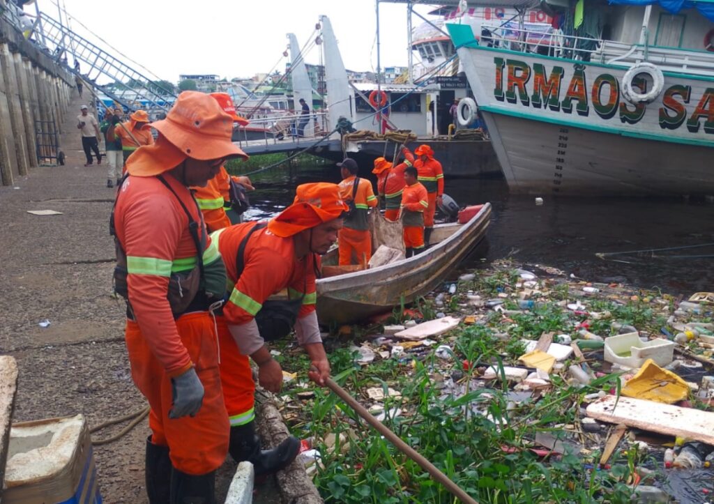 Além da limpeza direta na orla, a prefeitura mantém uma rede de 14 ecobarreiras instaladas em pontos estratégicos dos igarapés. Entre janeiro e março deste ano, essas estruturas foram responsáveis por reter aproximadamente 1.050 toneladas de resíduos, evitando que o material chegasse ao rio Negro.