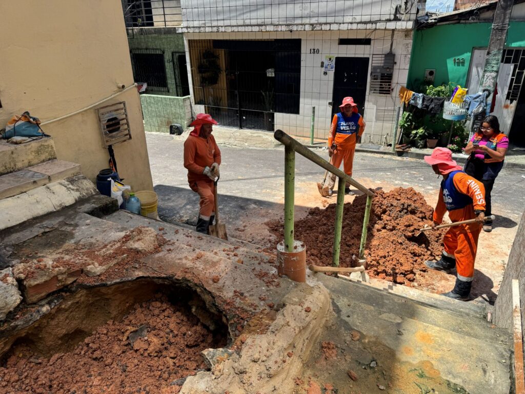 De forma ágil, as equipes da Seminf iniciaram os serviços para conter os danos e restabelecer a normalidade no local. O trabalho inclui o anelamento da tubulação, técnica que atua na vedação e realinhamento dos tubos, seguido do aterro e da reconstrução da escadaria em concreto, garantindo novamente o acesso seguro e o escoamento adequado das águas pluviais.